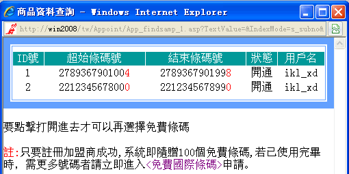 使用系統已送您的100個免費條碼(有條碼才可以在B2B網路上通行無阻。)