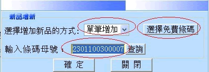 (注意:如果您要快速將新產品同時建檔並立即上架,請務必先選取免費條碼,
