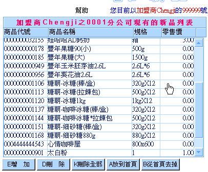 若想在新品列表中增加您公司的新品,按鍵盤上的“E”鍵或點該“E增加新品”按鈕可以新增新品。如圖: