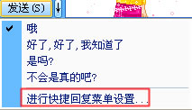 | 2.然后会出出如下图的菜单:单击“进行快捷回复设置...” |