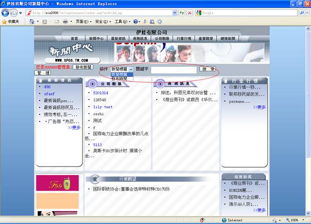 4.若想快速查找某一条新闻消息,则可以在下图选择一种条件输入关键字进行搜索