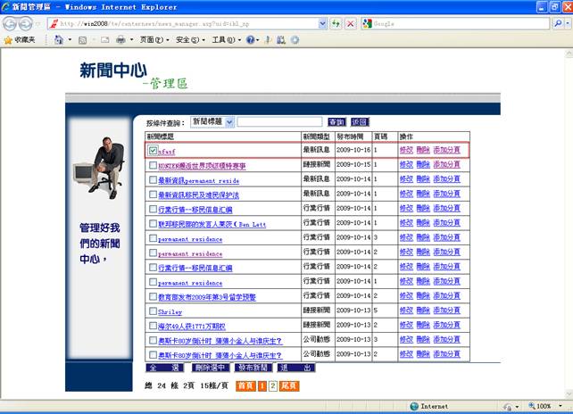 在管理页面你可以通过查询来查找你所添加的新闻(详情看步骤6),看看是否添加成功。当然你也可以在新闻中心页面上按你添加的新闻的分类来查看。