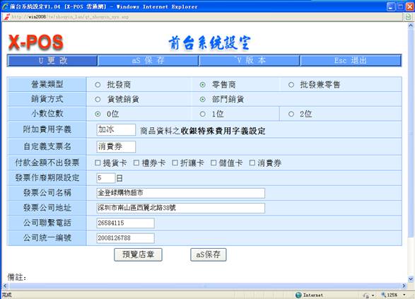 測試目的:完善收銀機前台系統設定功能方便用戶使用X-POS收銀機