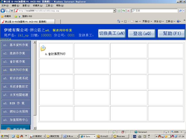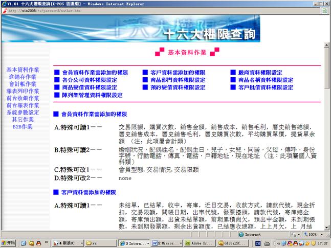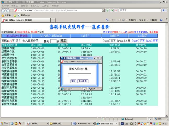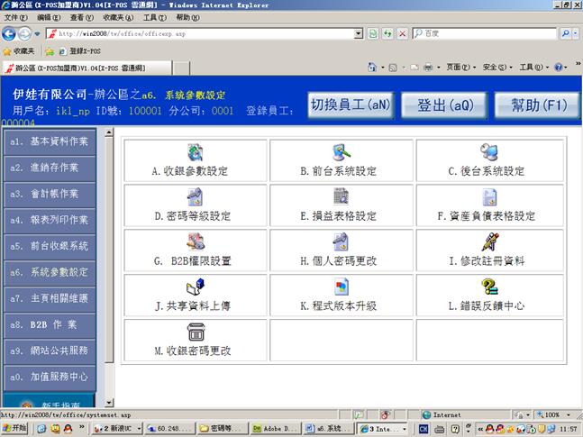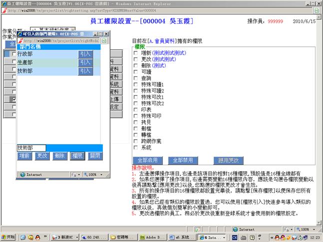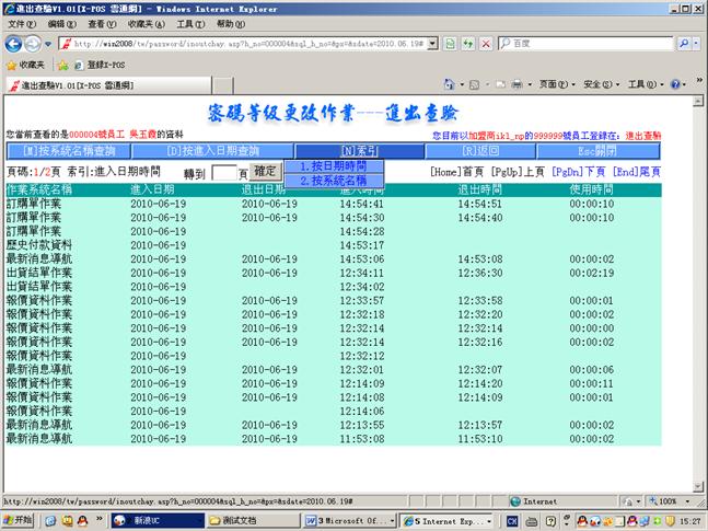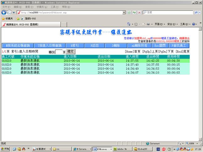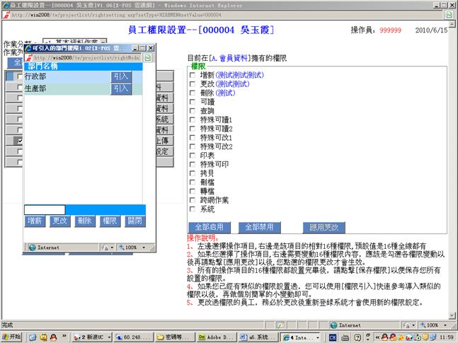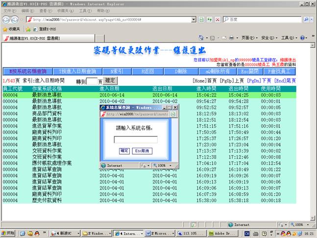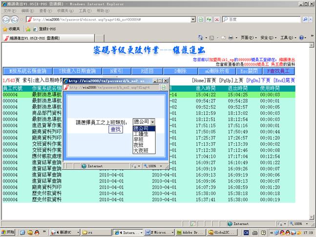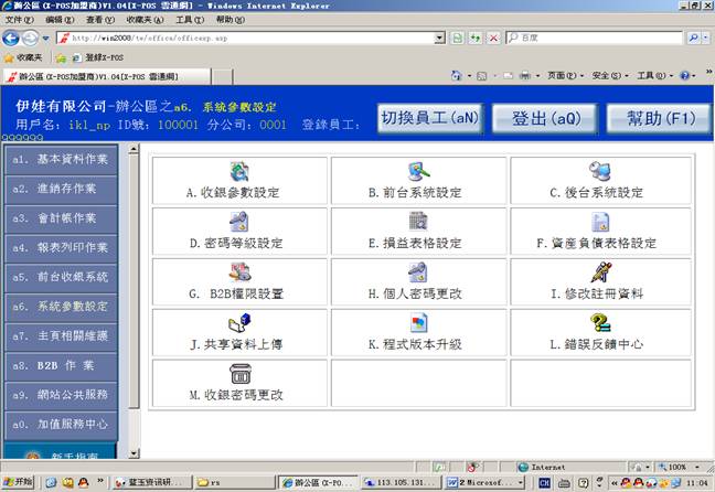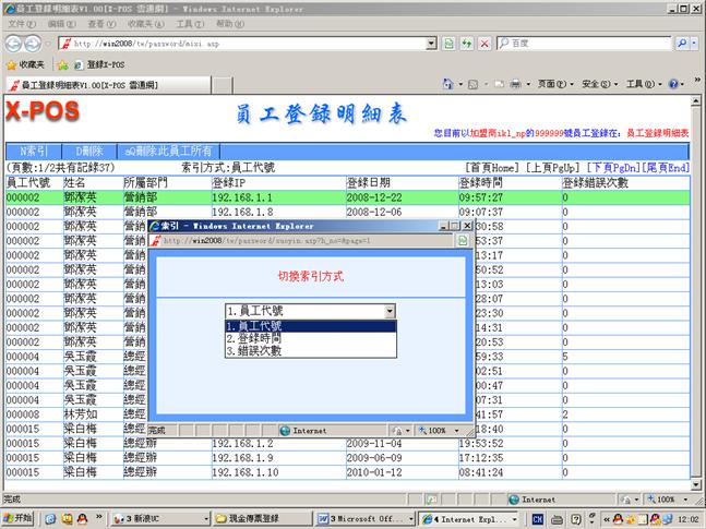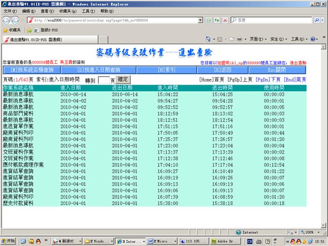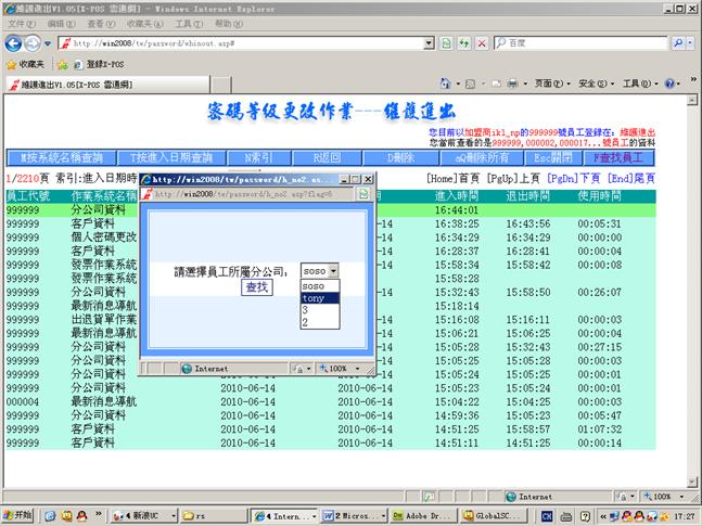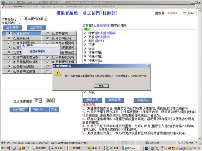 本作业首次登录可以由最高管理者员工代号999999进入操控,对于增加的每一位新员工都可以设定他的登录操作权限细项,以及限制他的登录有效时段,更能观察每位员工登陆作业时进出的状况,更能检查该员工密码是否被异常的破解登录,虽然系统设定有员工登录密码输入错误五次自动锁定三个小时,但是管理者还是应该利用本作业进去注意检验。
