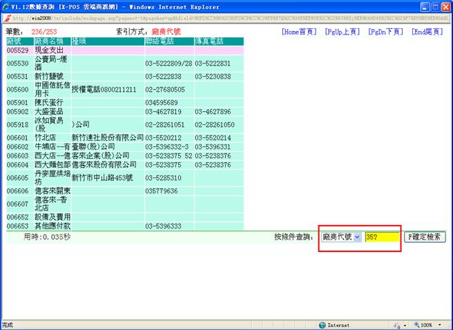 例如 :强制查询模式下可以输入问号[35? ],表示『?』起的位置往后都补足『零』,例如输入[35?]就等于是指定查询最接近[35000]厂商代号的资料。