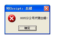 如输入分公司代号:005, 不存在,则弹出提示框,单击