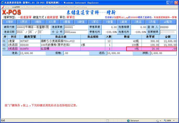 测试目的:完善整个进退货单作业使客户能够放心使用