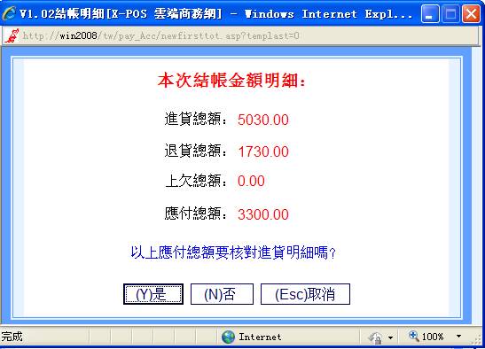 进货单所属厂商的基本资料输完后,弹出提示;单击