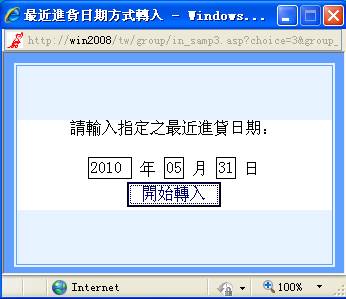 2-B 进货单号:可以输入厂商的出货单号码内容,如此方便厂商的出货单内容与自己方的进货单内容近似,当万一单据内容有问题需要以厂商的出货单找寻自己方进货单时,双方可以更容易沟通找寻出来。输入的进货单号为6位数字,若不足6位数字时前面将自动补零,同一家厂商代号的进货单号不能重复,若有重复输入,则会弹出警告: