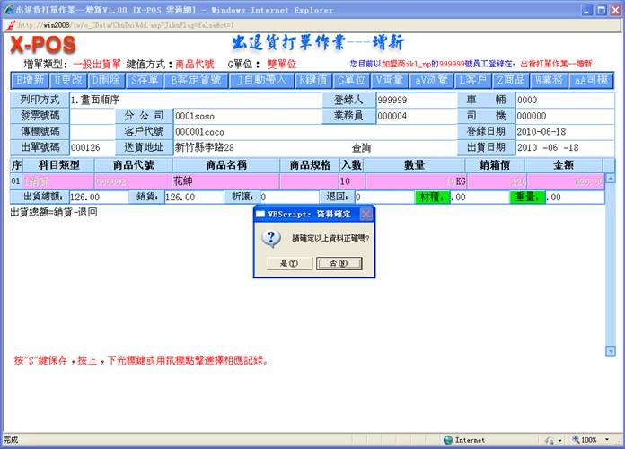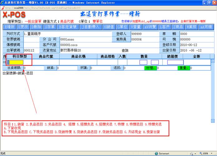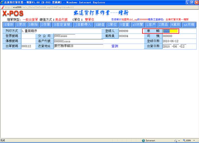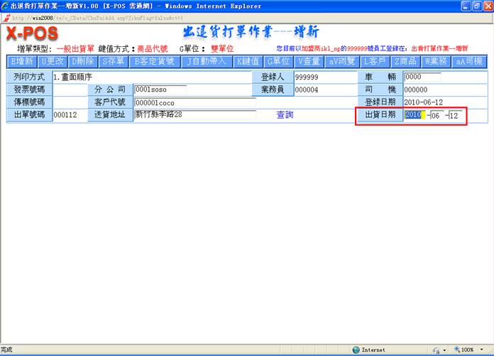 后,进入出货增新页面,如图: