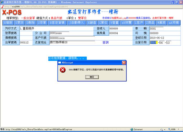 1-3. 如输入分公司代号:09, 不存在,则弹出提示框,单击