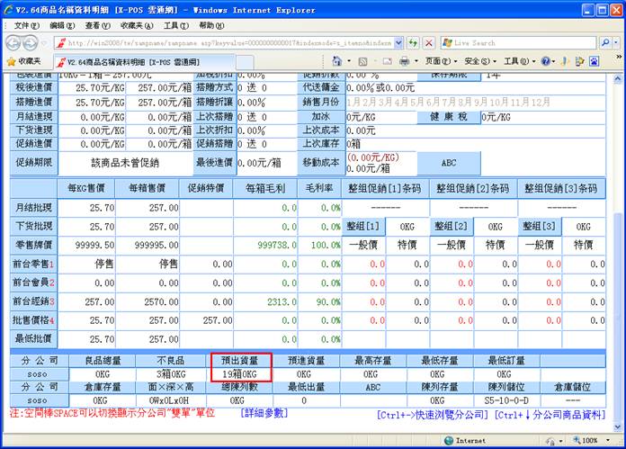 13-2.S存档之前,商品名称资料中,预出货量为:61箱0KG;