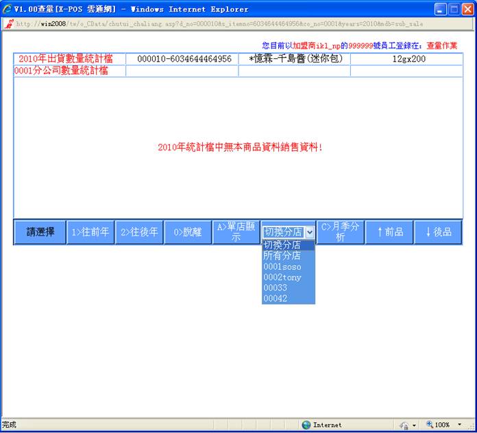 10-1. 系统允许快速查看该出货商品的相关销售数量表内容,如此可以供操作者快速判断出货商品的週期性问题,或是销售数量的多寡,来与出货数量的多少做个人工的相对比较,以防出货数量的偏高造成无谓的库存积压。数量的查看可以快速看到历年的销售数量,像是月量、季量、半年量、年量。SQTY&年档