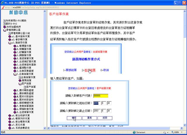 客户结单作业是对出货单的结账作业,其来源于对出退货作业里打的出货单或订购单中的出货回车处理后的出货单进行结账转单的操作,出货结单可分为单张结单和客户结单两种操作,其中客户结单为对输入指定客户代号调出相应的出货单进行结账转档的操作。