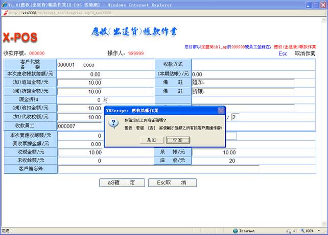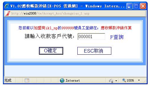 1-2.弹出信息框,客户代号为六位数,输入位数不足,自动补零。输入收款客户代号:000123,如图: