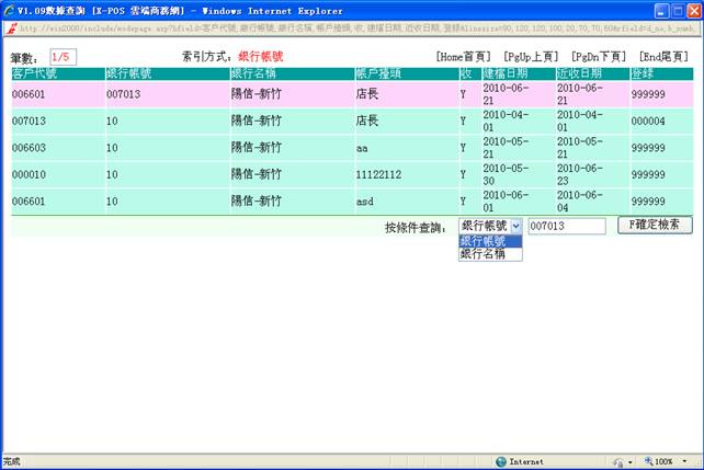 键,则进入查询页面,1-5. 在查询页面中,您可以先看当前页中,是否有您所需的客户,若有单击它即可;若无,您可以利用键盘上的