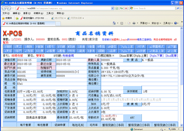 7-1、點擊“詳細”后系統將進入該商品“進退貨”的詳細資料頁面,此時您需選擇其中的