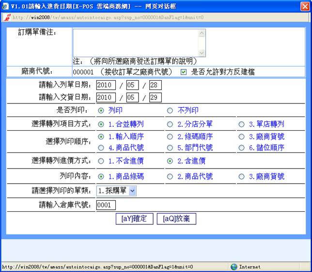 2-2、接下來彈出“採購訂單輸入作業”頁面,選擇