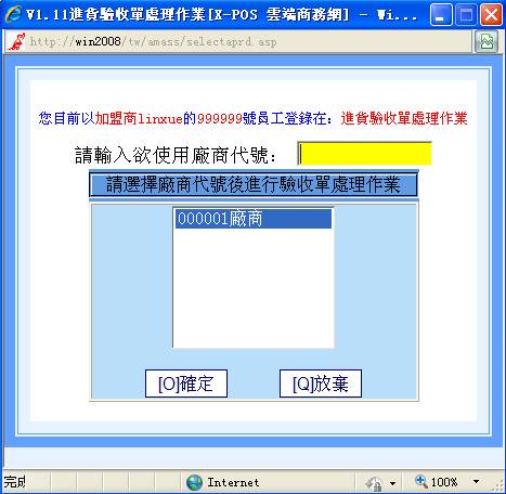 )按钮輸入“廠商代號”並完成輸入以便增加新的訂單,完成初步操作;