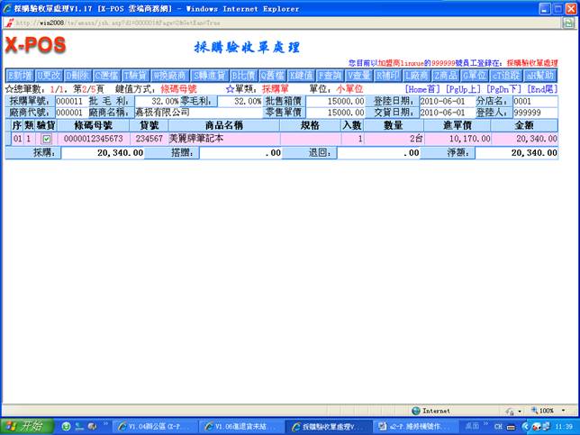 4-1、選擇“採購訂單驗收處理”之后系統將彈出以下頁面,此時用戶只需雙擊已存在的