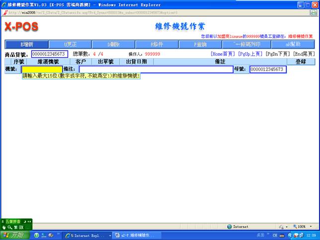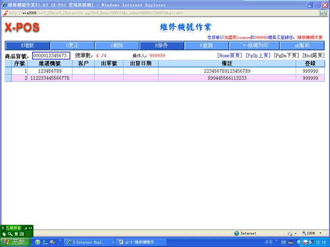 7-5、下圖是已完成好“維修機號作業”商品的記錄,如將另一件也記錄進去您只需要選擇“