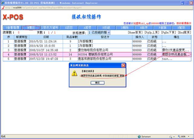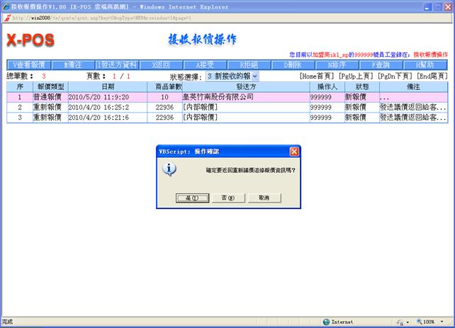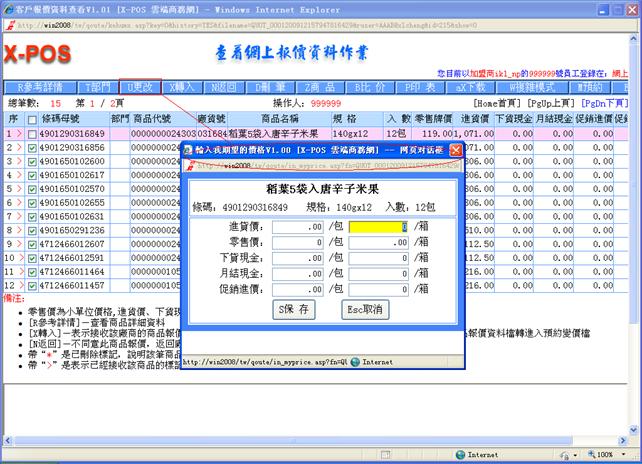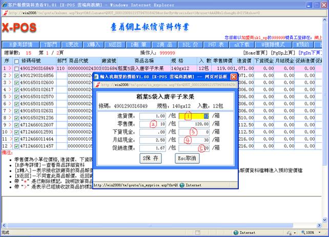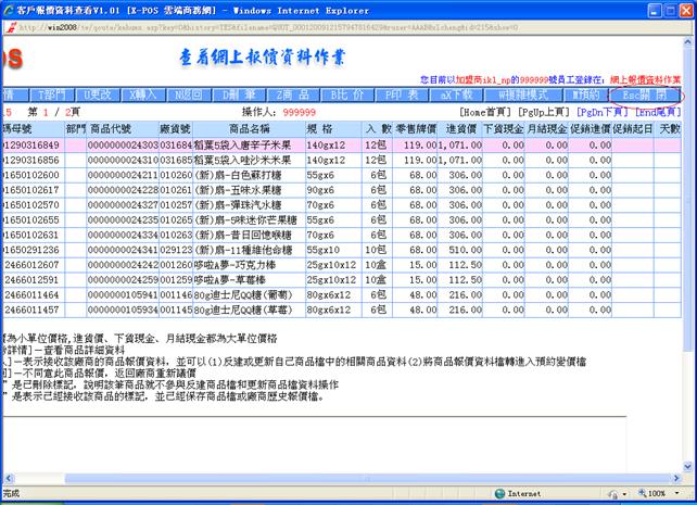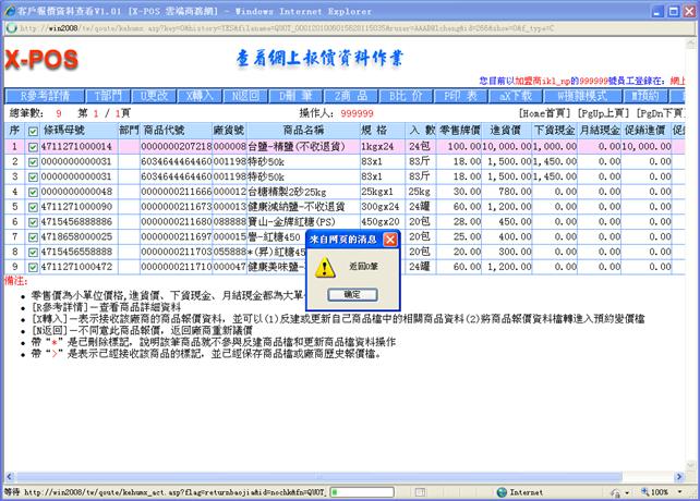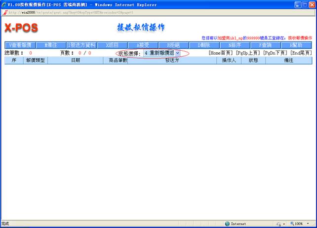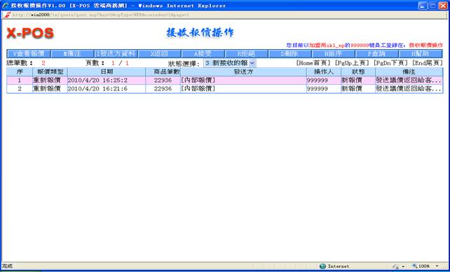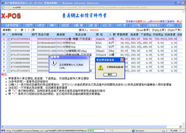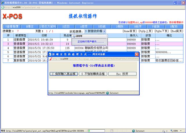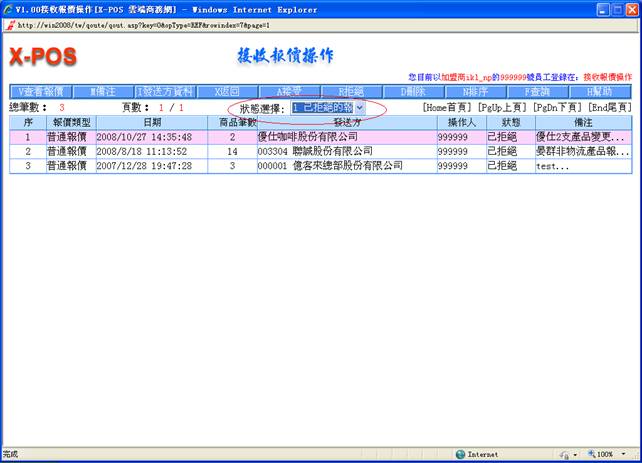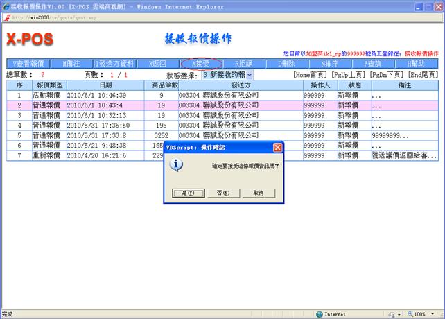 :表示接收该厂商的商品报价资料,并可以(1)反建或更新自己商品档中的相关商品资料(2)将商品报价资料档转进入预约变价档。
