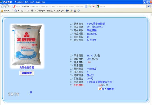 或双击指定的数据)查看商品的详细资讯。如有则显示商品详细资讯。如下图: