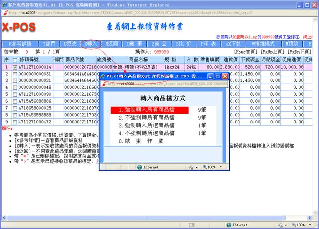 注:此操作允许自动反建立本身目前不存在的商品资料转入商品资料档中,若已存在的商品只做更新资料的动作,进货价格将随同更新。