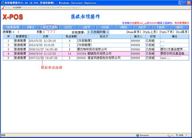)进行拒绝。可以在‘拒绝的报价’状态下查看已经被拒绝的报价,结果如下图: