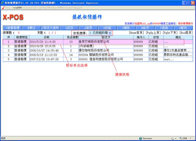 9-1.选择状态,选中需要删除的报价信息,如下图: