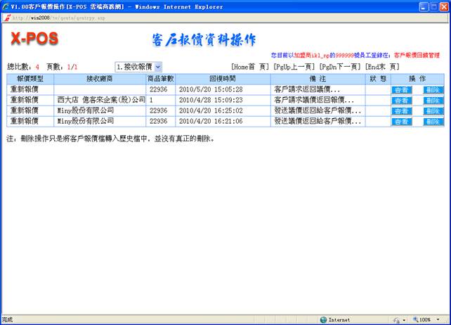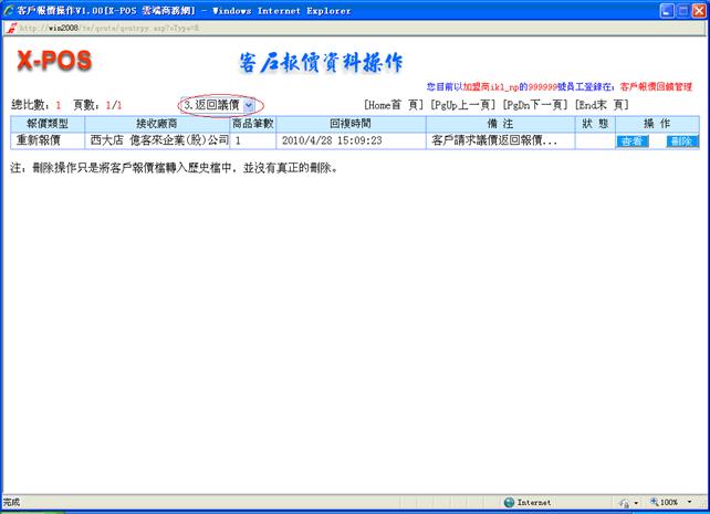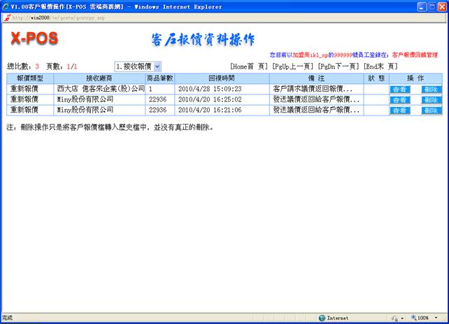 :删除报价信息只是将客户报价档转入历史档中,并没有真正的删除。如下图: