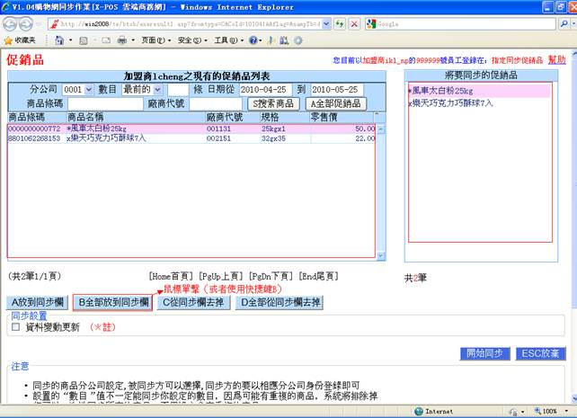 ),商品就会自动添加右边的将要同步的促销商品栏里。