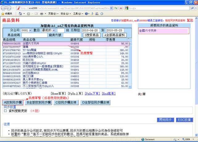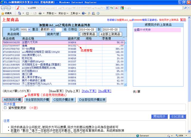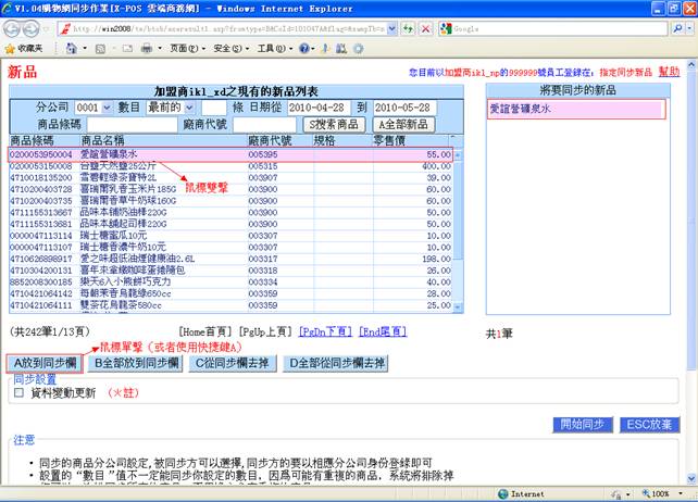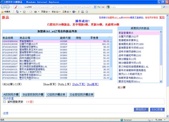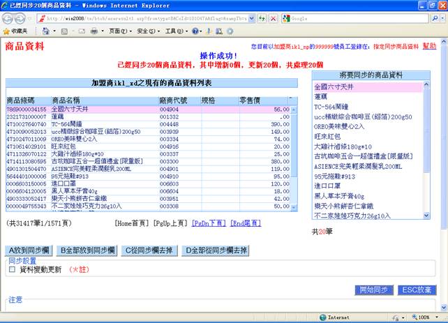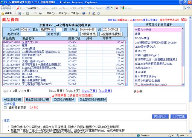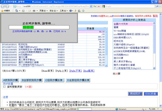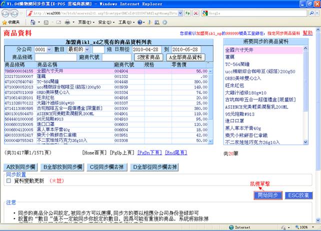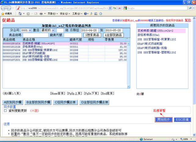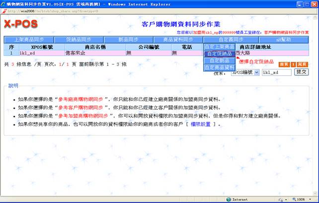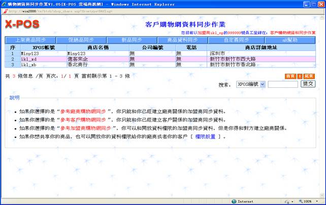 参考客户购物网同步是你和你已经建立客户关係的加盟商同步资料。目前包括上架商品同步、促销商品同步、新品同步、商品资料同步、自定义同步(自定上架商品、自定促销商品、自定新品、自定商品资料)。