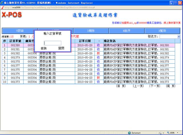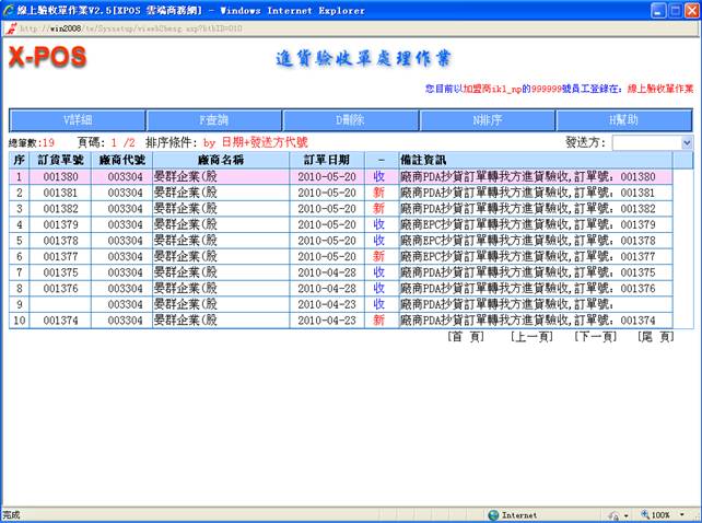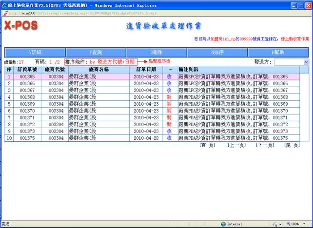 :对订单进行一定的排序浏览。分别为‘日期+发送方代号’和‘发送方代号+日期’两种方式。
