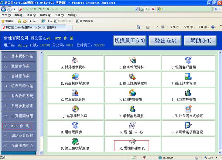 ),然后输入客户代号,进入厂商服务界面: