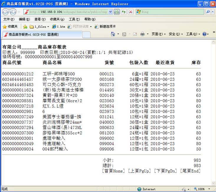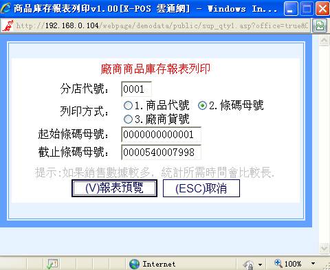 2-A 厂商商品库存报表列印