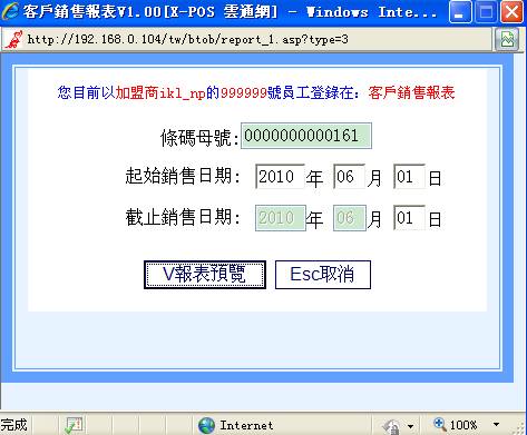3-C-2 选择您要收集的条码母号范围和起止销售日期后,点选“V资料收集”。