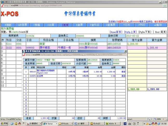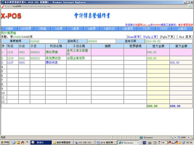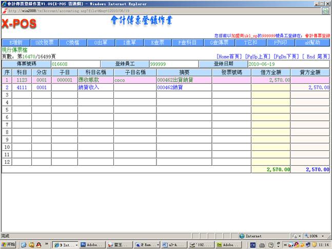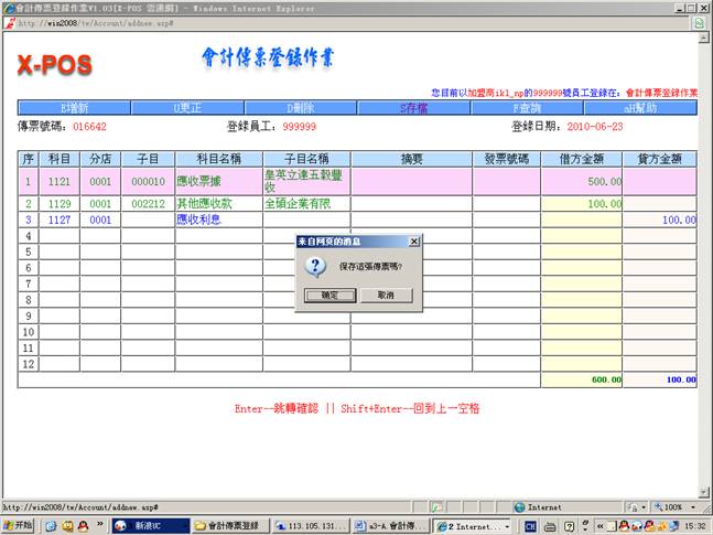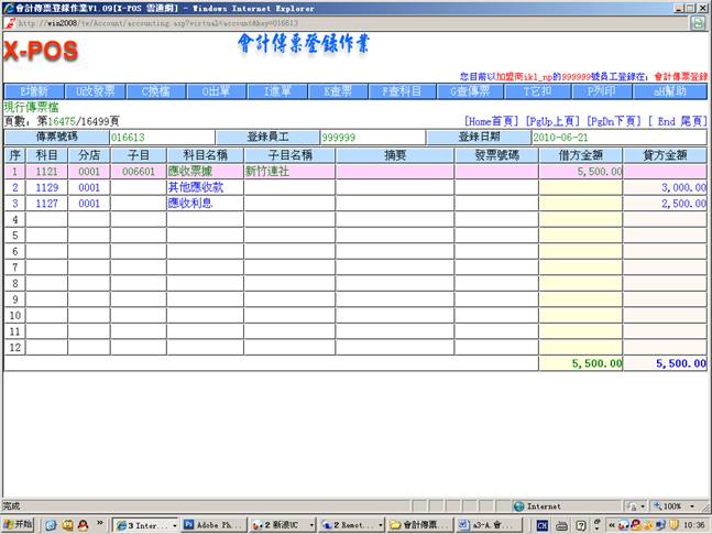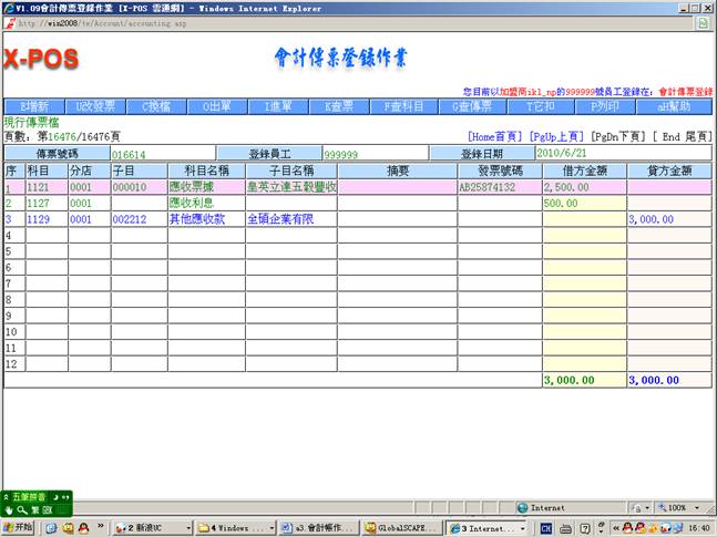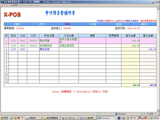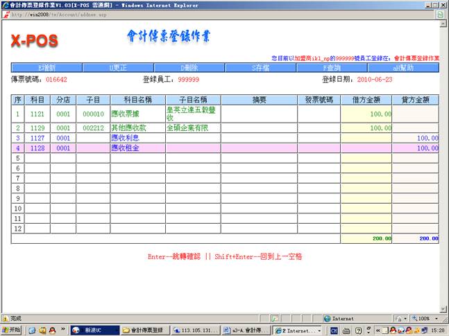 2.进入会计传票登录作业