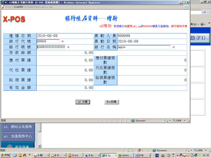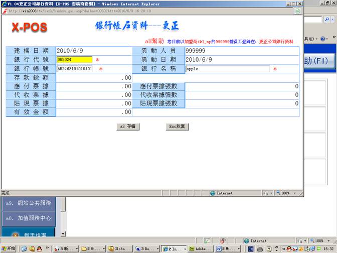 4-1. 更改银行帐户资料,例如:将银行代号改为(005030);银行名称改为(Ann);银行帐号改为(AB24681020)