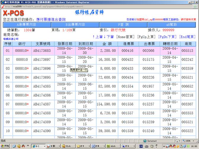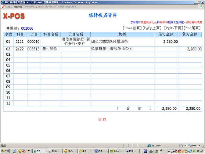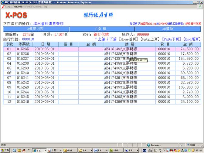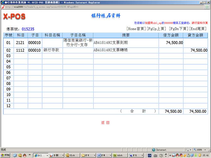 测试环境:银行帐户资料,内网使用ikl_np用户登录。