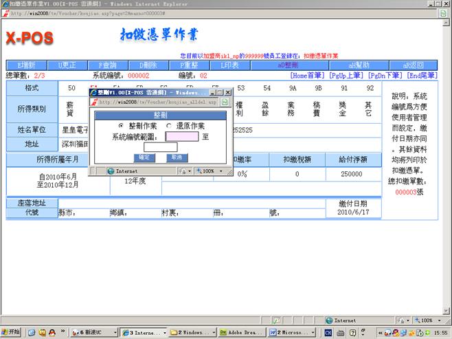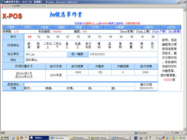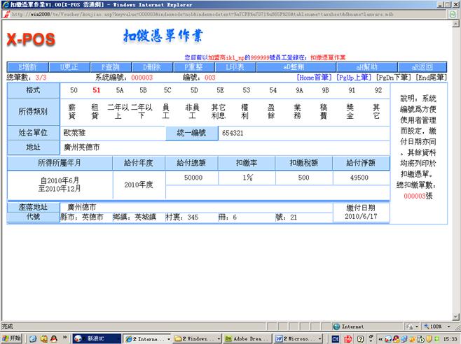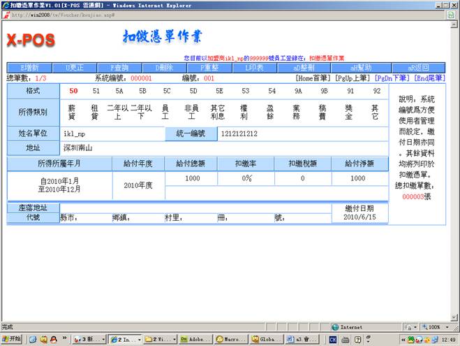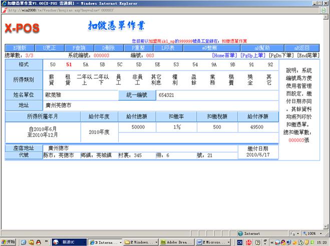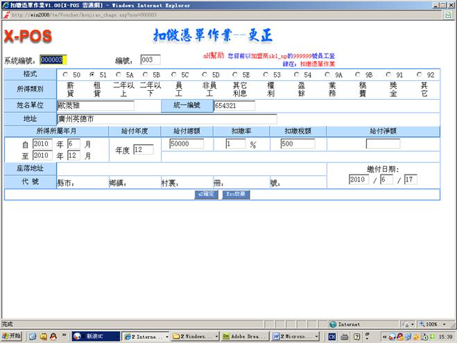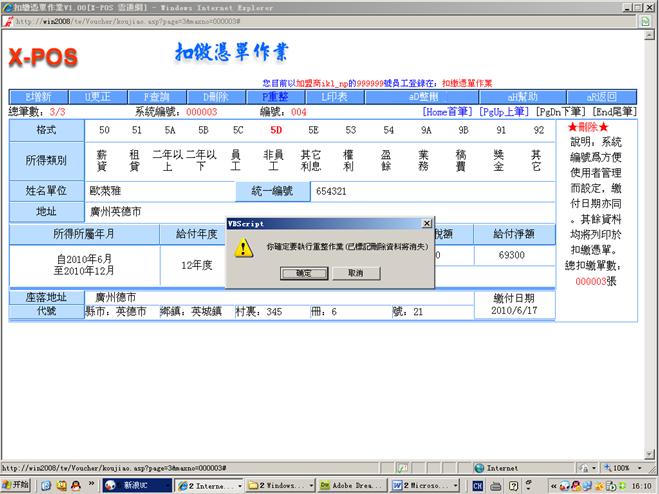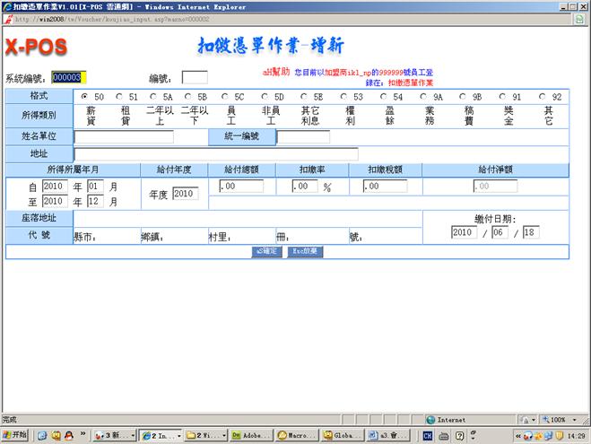 3-1. 增新扣缴凭单作业(000003)=》点击
