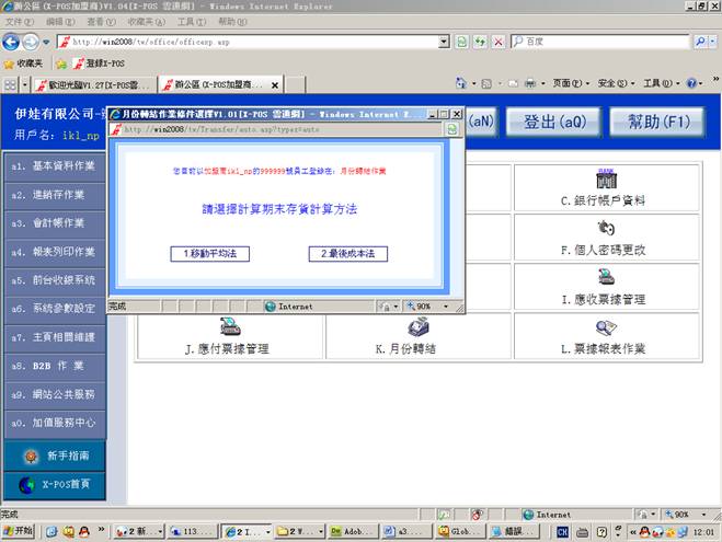4-1-1. 自动计算期末存货计算方法(1.移动平均法;2.最后成本法),例如:选择 “移动平均法”