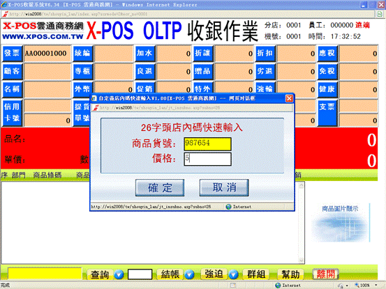 ,彈出以下輸入框,在輸入框中輸入欲購商品的貨號(如987654)及單價(如5)并按