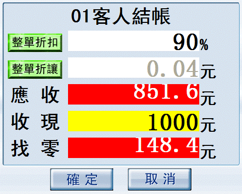 按鈕(以01客人層結帳為例),彈出以下對話框,點擊