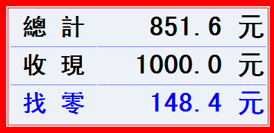 本功能是對整單而言,例如說:以下所有商品總計原價為154元,若以九折出售。原售價、折扣金額、應、免稅金額如下所示,標註框標記: