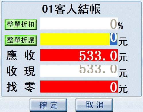 按鈕(在此以01客人層結帳為例),彈出以下對話框,點擊