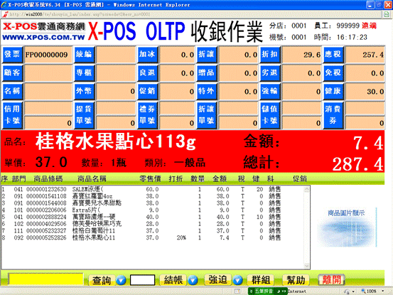 18-2、完成上步操作后X-POS界面中的第8筆商品已不存在: