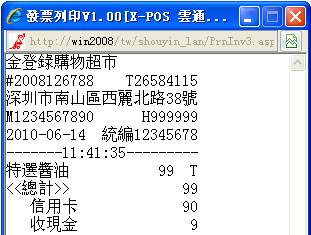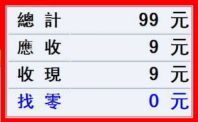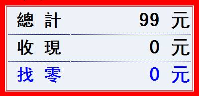 以上對話框所顯示:總計金額99元;發票顯示:操作員工號999999、統編:12345678、信用卡支付金額99元,信用卡結帳操作成功!