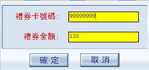2-7-2、完成上步操作后系統彈出以下對話框,用戶只需在裡面輸入禮券卡號和金額600元即可點擊