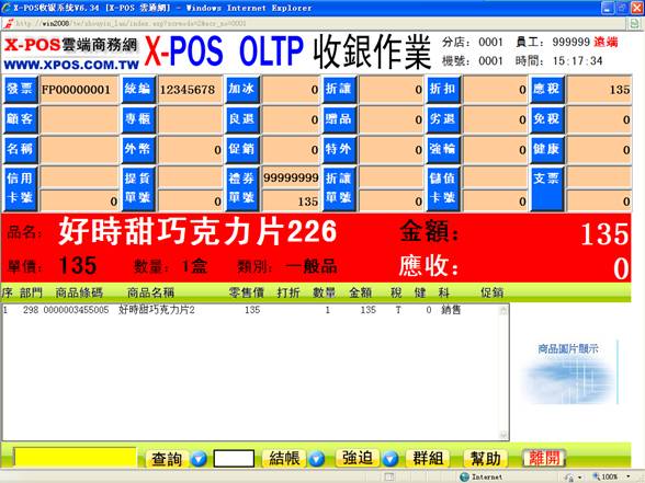 3-3、以下是完成禮券卡號和金額操作后的X-POS收銀界面,可見禮券單號處顯示已輸入的卡號和金額,接下來用戶只需點擊界面中